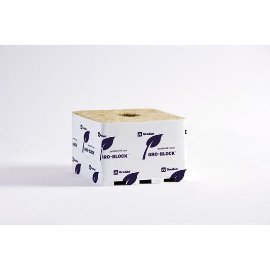 Grodan Gro Block Improved GR6.5 Small 4" w/Hole, 4" x 4" x 2.6" Strip - Wrapped (Sleeve of 6)