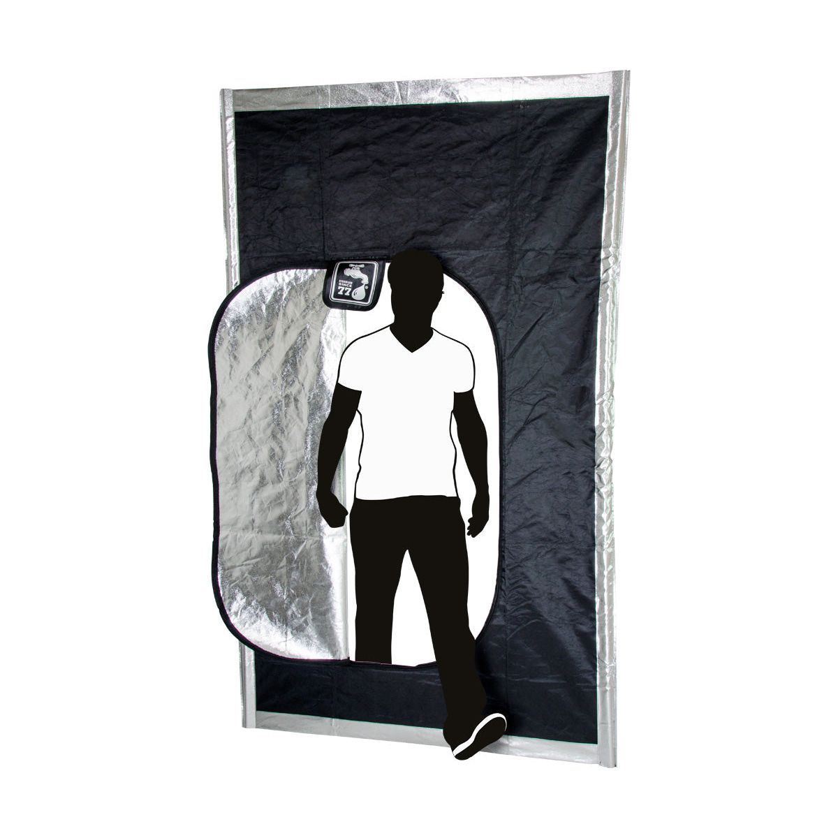 Professional-grade fabric zipper door that is easily installed as an entry/exit door to a grow room features super durable material, tape-friendly borders, a high quality light-blocking zipper, and reflective material on the interior side. For extra protection against light pollution, the Black Hatch also has a heavy-duty fabric layer covering the zipper on the reflective side. Insulative design helps maintain desired grow room temperatures.