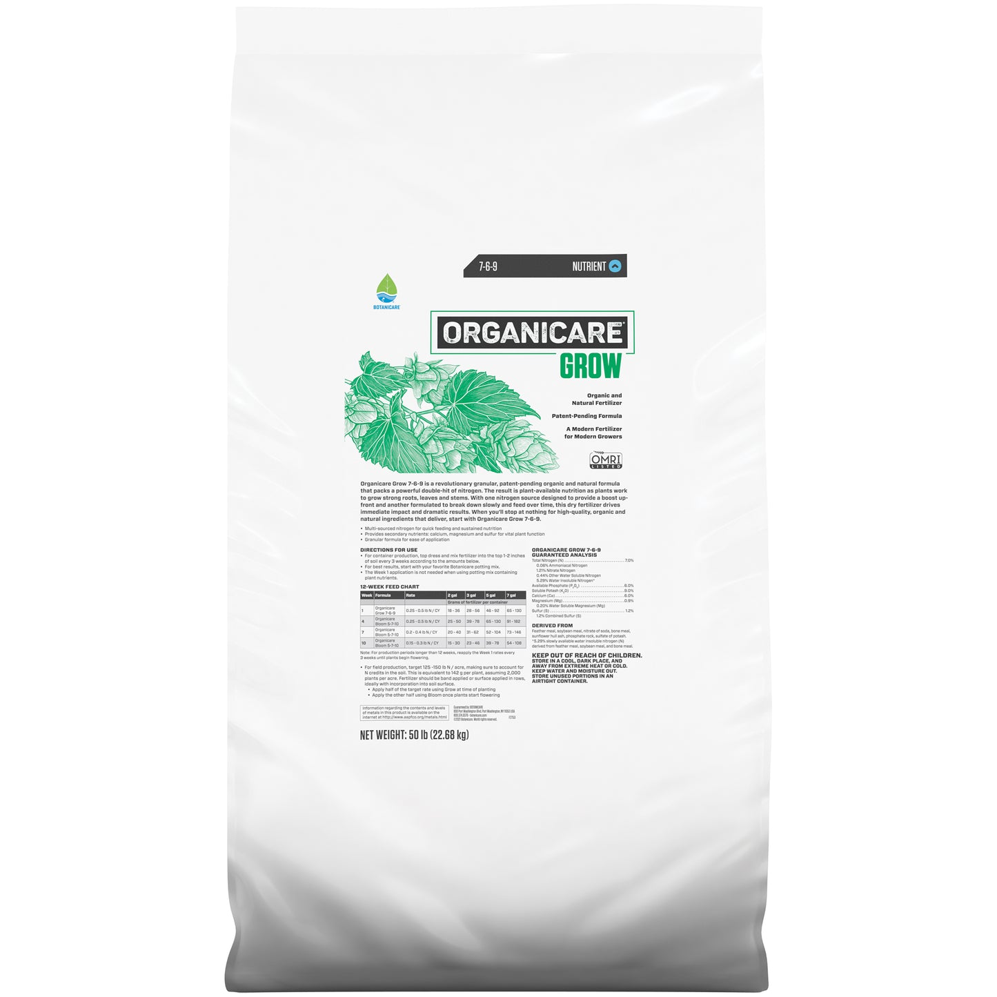 Organicare Grow 7-6-9 is a revolutionary granular, patent-pending organic and natural formula that packs a powerful double hit of nitrogen. The result is plant-available nutrition as plants work to grow strong roots, leaves and stems. With one nitrogen source designed to provide a boost up-front and another formulated to break down slowly and feed over time, this dry fertilizer drives immediate impact and dramatic results. When you’ll stop at nothing for high-quality, organic and natural ingredients that deliver, start with Organicare Grow 7-6-9. Organicare Grow