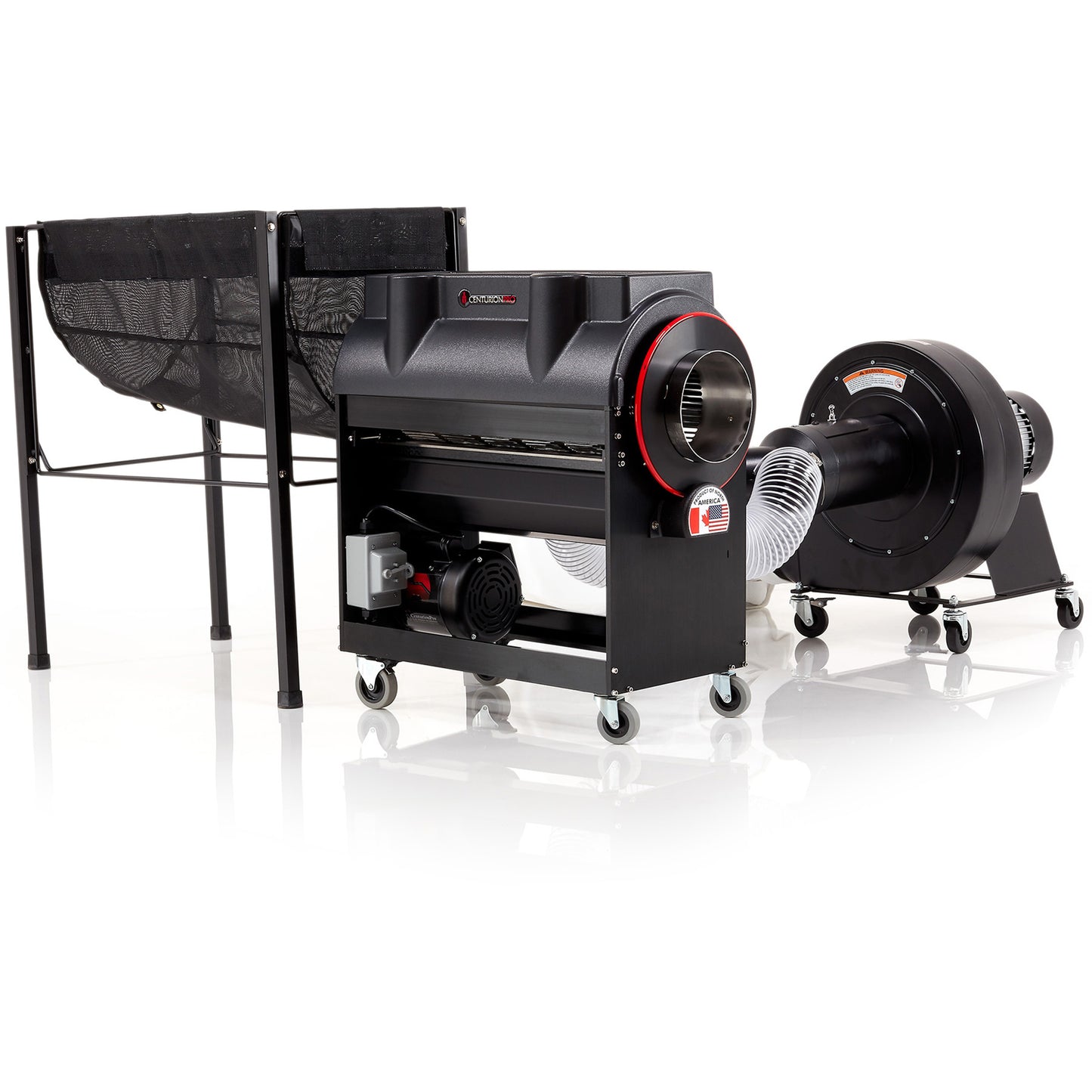 These upgraded versions of the classic CenturionPro trim machines include the Quantanium tumblers. Quantanium is a multi-coat nonstick with a unique mix of titanium particles blended into each coat. Quantanium's multi-layer internal reinforcement of titanium creates resistance to scratching, abrasion and wear that exceeds most internally re-inforced and all conventional nonstick coatings on the market. In addition, all of our Quantanium non-stick coated tumblers are made without PTFE/PFOA. Another benefit of the Quantanium tumbler is that it speeds up the harvesting process since no downtime is required to stop and clean the tumblers throughout the day. When cleaning the Quantanium tumbler, we recommend that you DO NOT pressure wash it. This will cause the coating to flake and come off. Treat the tumbler the same way you would treat a non-stick pan at home by letting it soak in warm, soapy water. After letting it soak, rinse the tumbler and then wipe it with a soft, clean cloth.