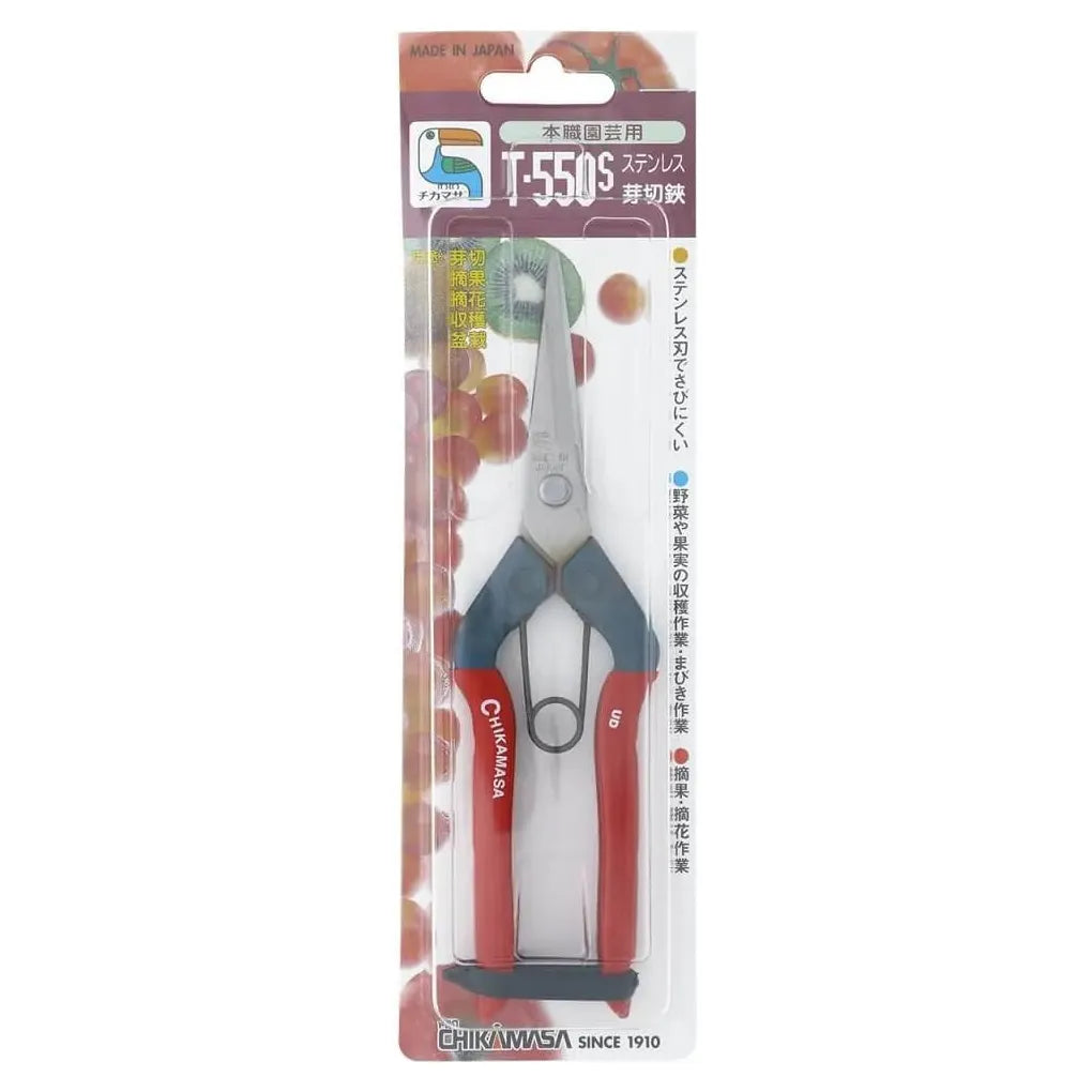 The Chikamasa Pruning Shear T-550S cuts through the competition. With high quality Japanese steel, Chikamasa garden scissors will make your work a pleasure. Chikamasa Pruning Shear T-550S and garden pruners are the ideal cutting tool for any farm!