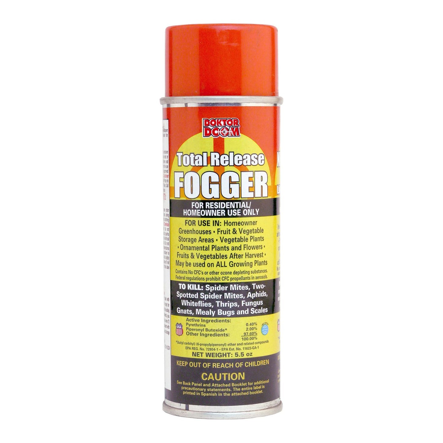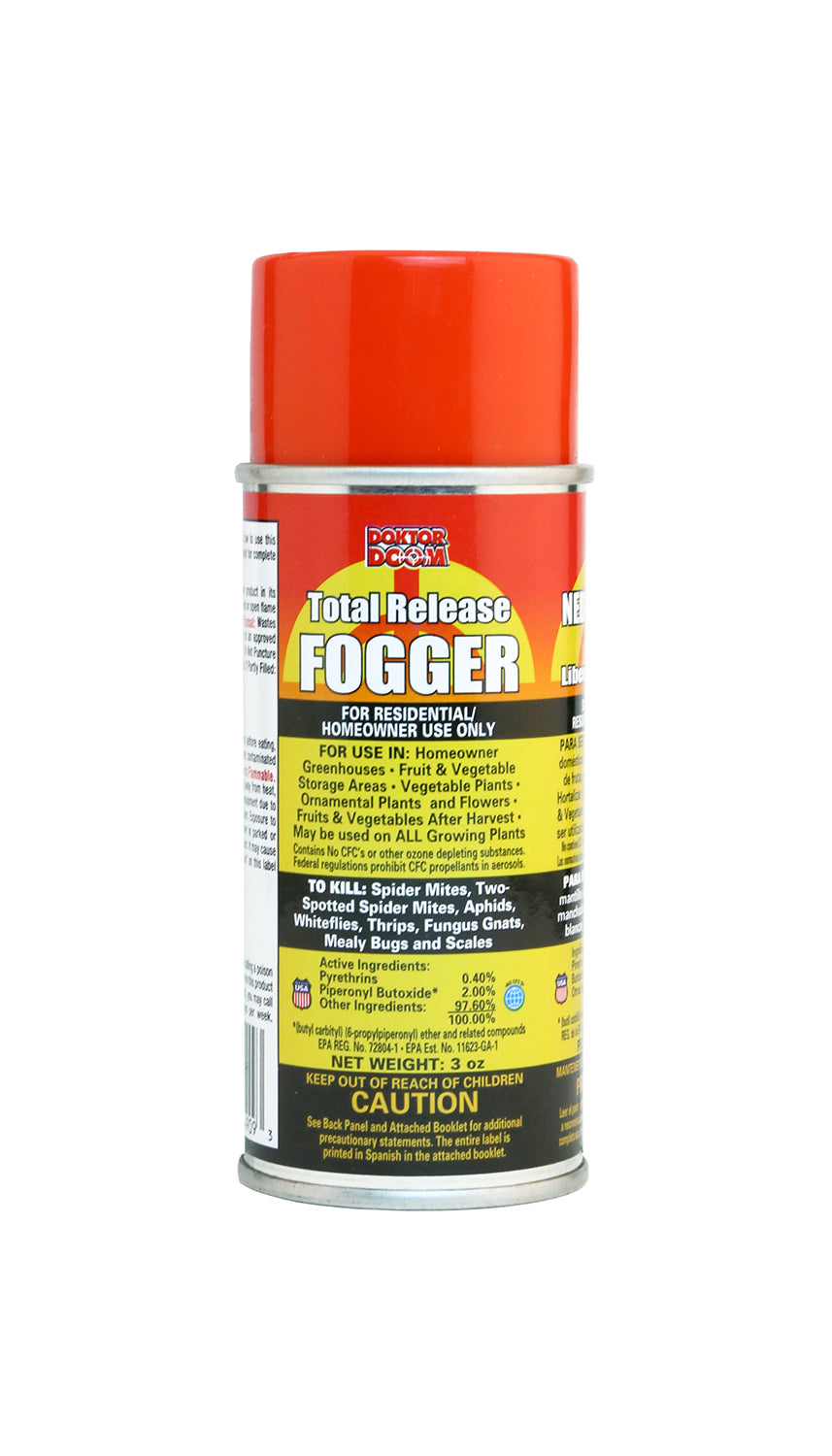 A total release fogger for use in homeowner greenhouses, fruit and vegetable storage areas and indoor gardening areas. Can be used with all ornamental plants, flowers, fruits and vegetables. Used for controlling fungus gnats, spider mites, two-spotted spider mites, aphids, whiteflies, scale, mealy bugs and thrips. No residuals. Pyrethrum breaks down within hours. It is safe to use up to a couple of days before harvest. No need for safety goggles, respirators, gloves etc. pH balanced formula without any perfumes or attars–ideal for those with post production of essential oils. No phyto-toxicity to plants providing product is used as directed on the label.