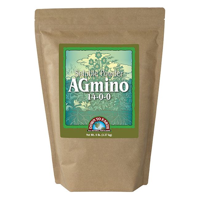 Down To Earth’s Soluble Powder Agmino is a professional-grade, water-soluble nitrogen fertilizer derived from vegetable protein for supplementing plant nutrient requirements or correcting nitrogen deficiencies in all types of plants including vegetables, flowers, trees, shrubs, vines and turf grass.