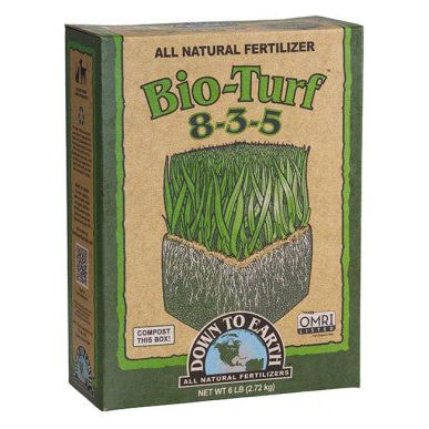 Down To Earth’s Bio-Turf 8-3-5 is an entirely natural granular lawn fertilizer designed to encourage deep root development to help reduce watering requirements. DTE Bio-Turf’s nitrogen-rich formula boosts early season growth while its extra Potassium reduces seasonal stress due to temperature change and drought. DTE Bio-Turf is also ideal for heavy feeding garden vegetables like corn, tomatoes and leafy greens.