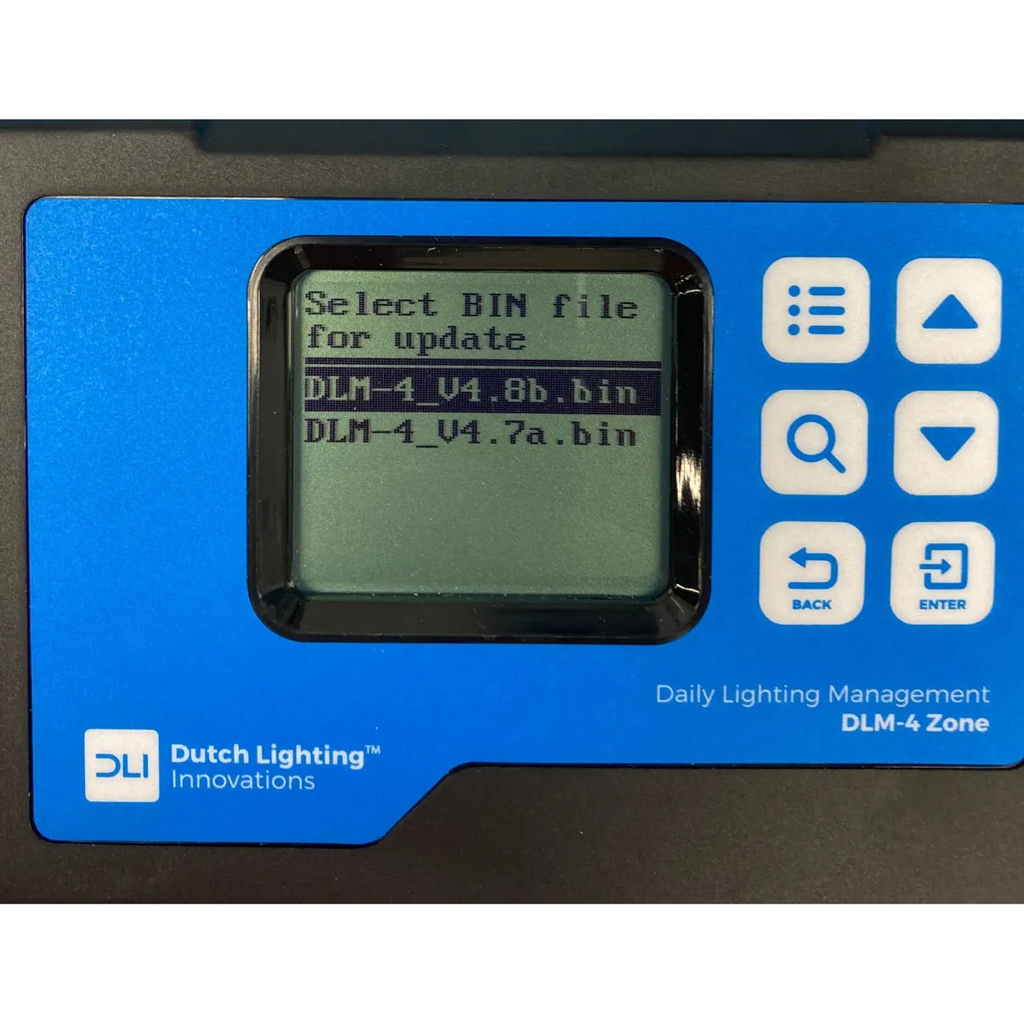 On a regular basis DLI will release updated firmware / software for the DLM-4 Zone Controller. The new firmware will update older versions firmware, or add new functions to the DLM-4 Zone Controller. By registering your DLM-4 Zone Controller on https://dutchlightinginnovations.com/product-registration/ you can be notified when these updates become available.