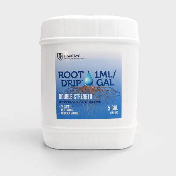 Use Root Drip at a rate of 2-5 mL/ gallon of water during the final flush stage or any phase of vegetative or flowering growth to help reduce mineral buildup in the growing media or irrigation system.