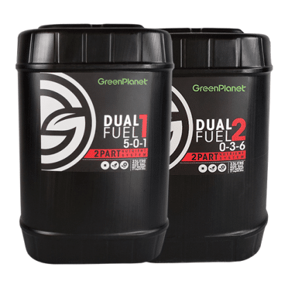 Dual Fuel 2 has higher levels of phosphorus (P) and potassium (K). Phosphorus plays a key role in essential functions of the plant including photosynthesis, healthy root development, and nutrient movement through the plant. Potassium aids in the conversion of phosphorus into energy that your plants can use and strengthens cell walls to support larger yields.