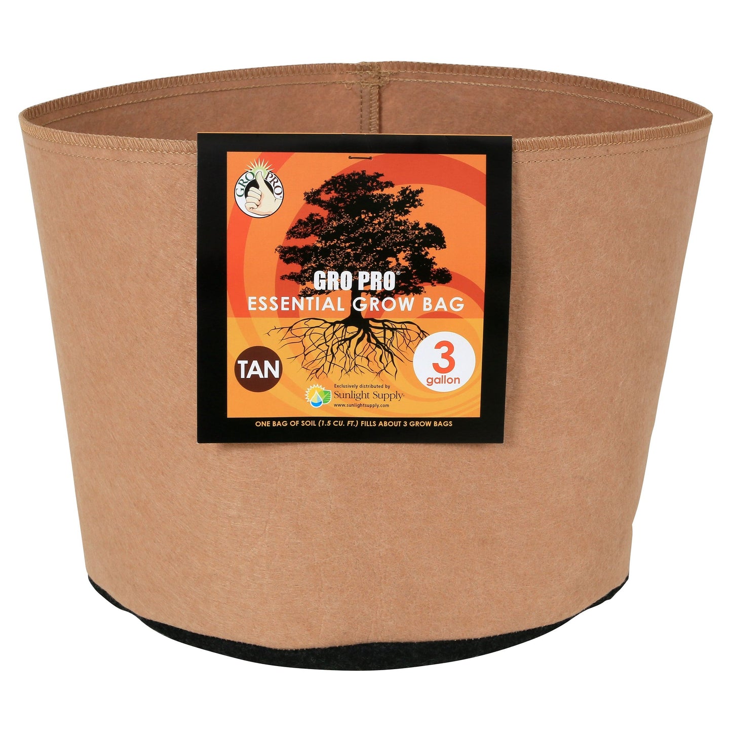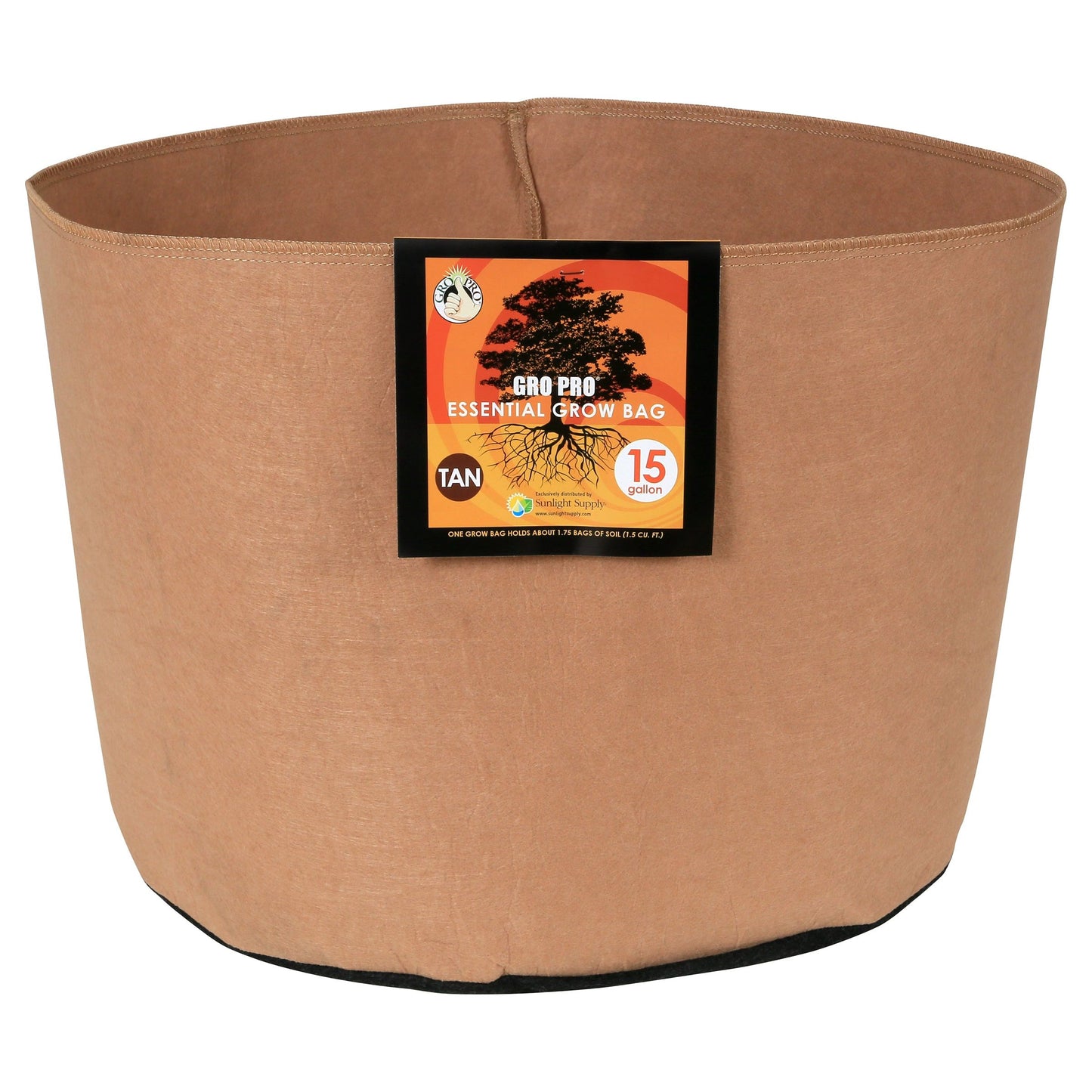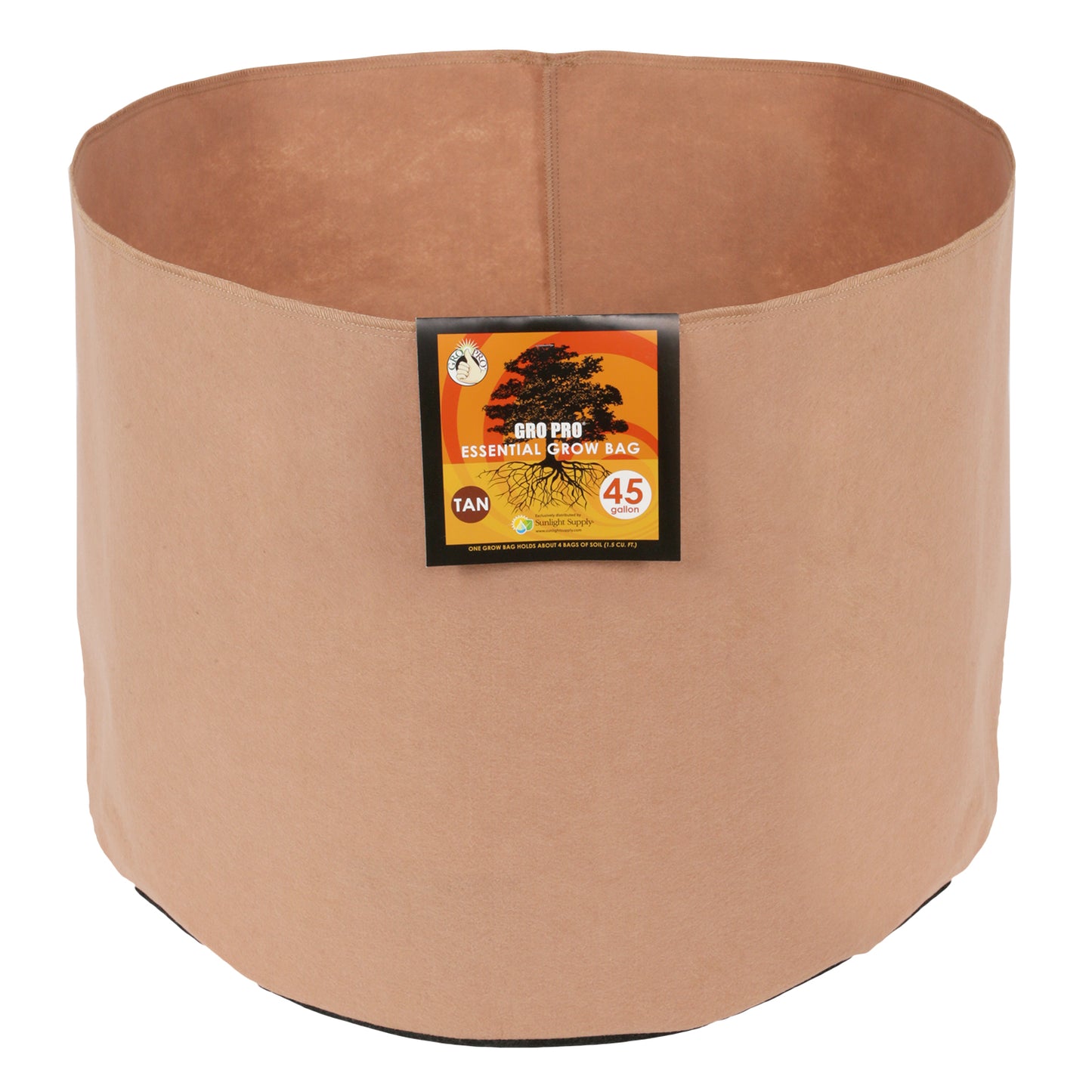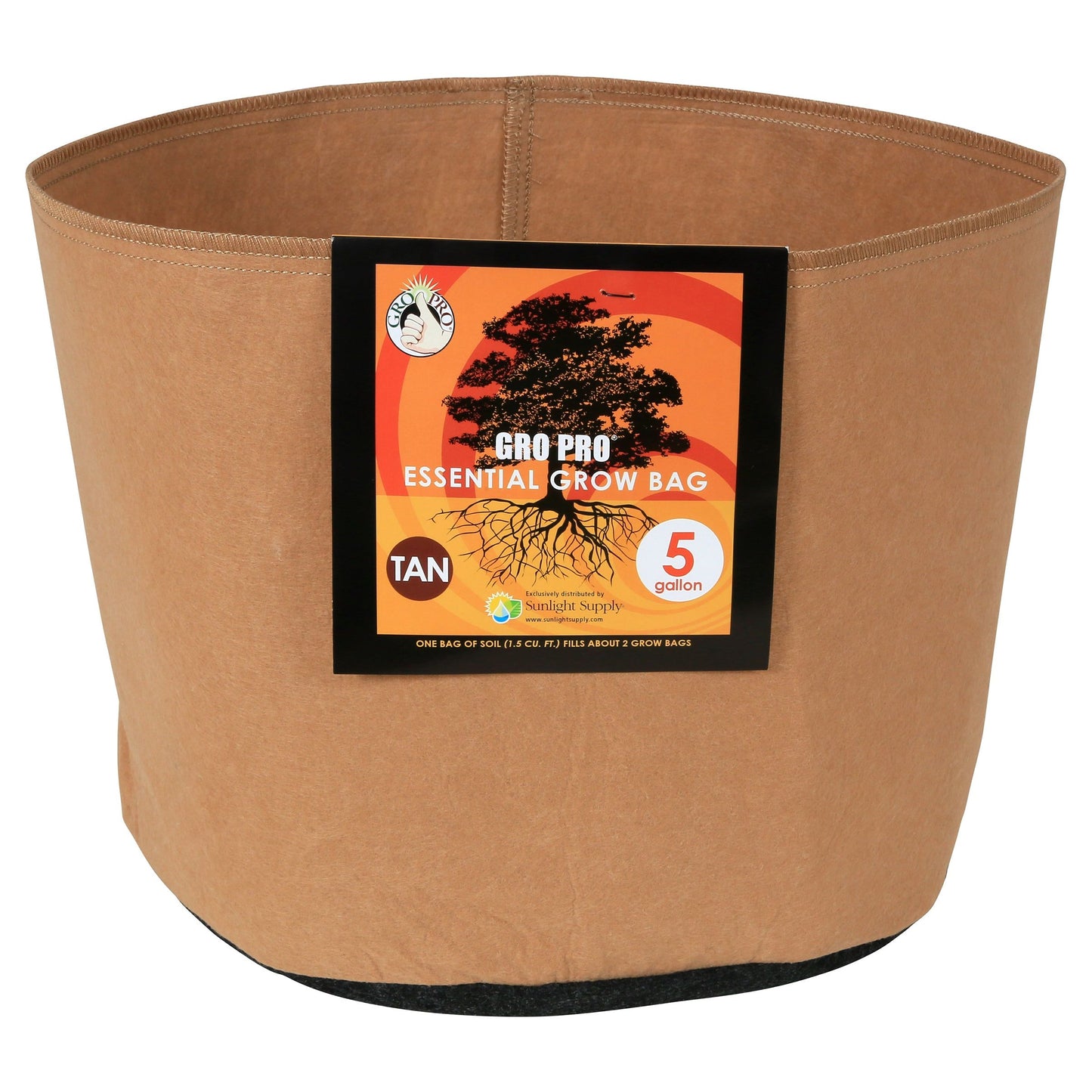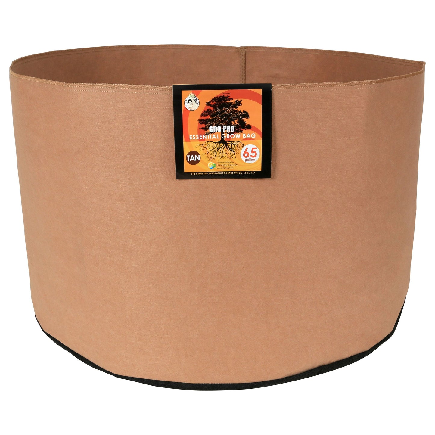 The Gro Pro Essential Round Tan Fabric Pots are constructed from high-quality non-woven fabric. This fabric provides great support, while allowing air to travel into the root system. The tan color adds variety and color to your selection. Gro Pro Essential Round Tan Fabric Pots feature breathable fabric allowing for faster plant growth through better access to oxygen. Air flow prunes the root structure for a healthier and happier plant. Gro Pro Essential Round Tan Fabric Pots will not trap water, which can help prevent overwatering of plants. Also keeps your roots cool in the heat. The Essential line of fabric pots are made from 220 gram weight material for great durability at an economical price.