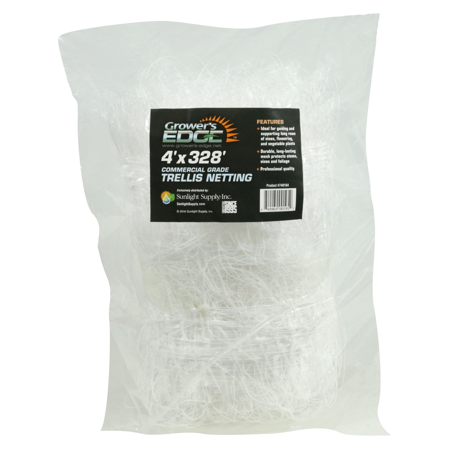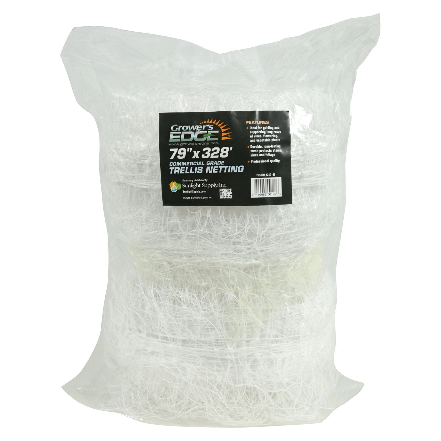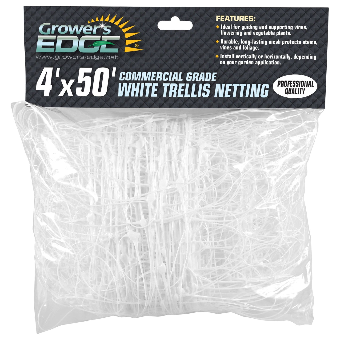 Grower's Edge Commercial Grade Trellis Netting is a strong, versatile polypropylene mesh specially designed for more efficient and economical cultivation of vegetables, fruits and flowers. Due to its durability and practical nature, Grower's Edge Commercial Grade Trellis Netting is being used by many agriculturalists and floriculturists. Grower's Edge Commercial Grade Trellis Netting fully satisfies the requirements for a variety of growing techniques, both vertical and horizontal. It is available in a variety of widths and lengths. It is easy to handle, simple to install and will not tangle. 6 in x 6 in reach-through holes.