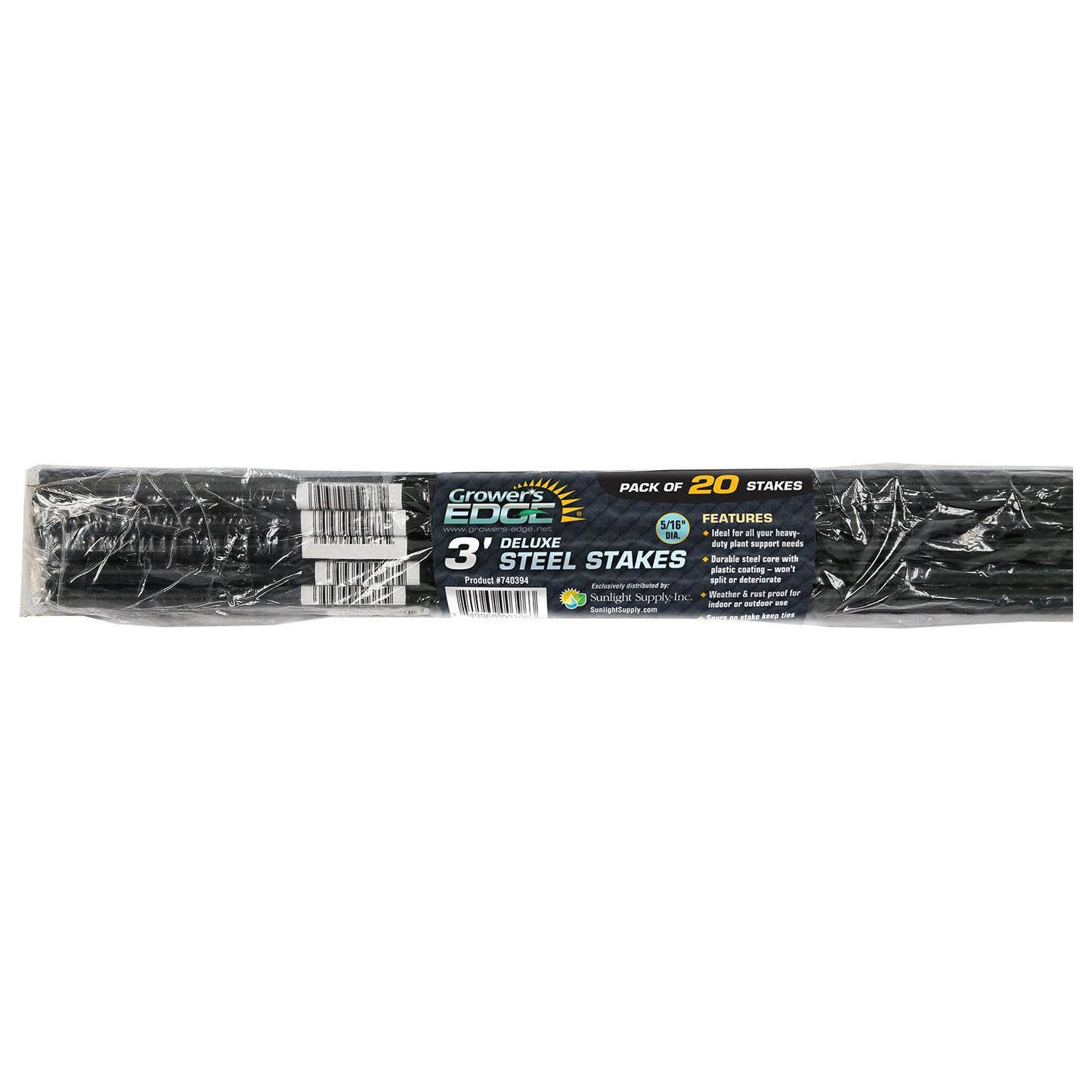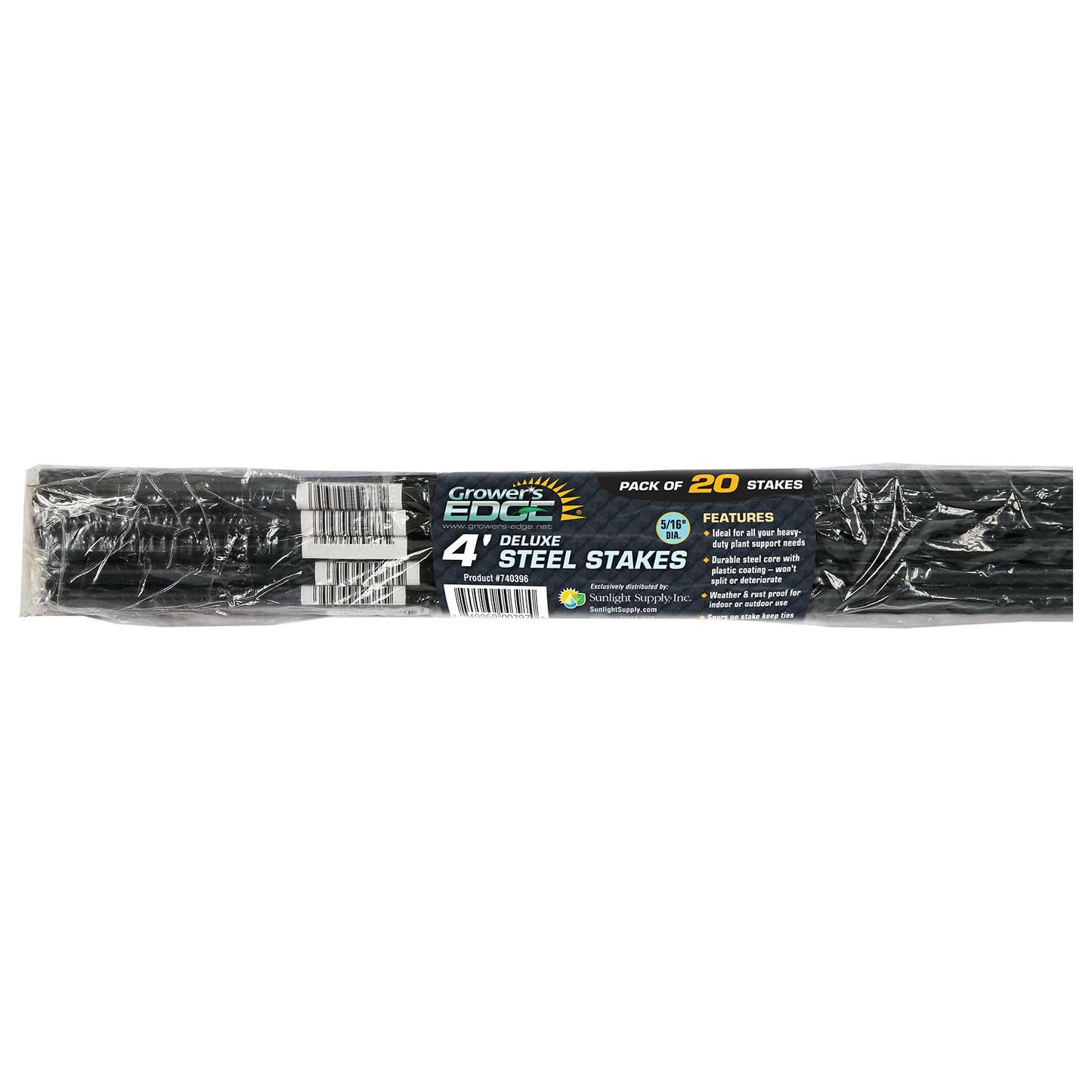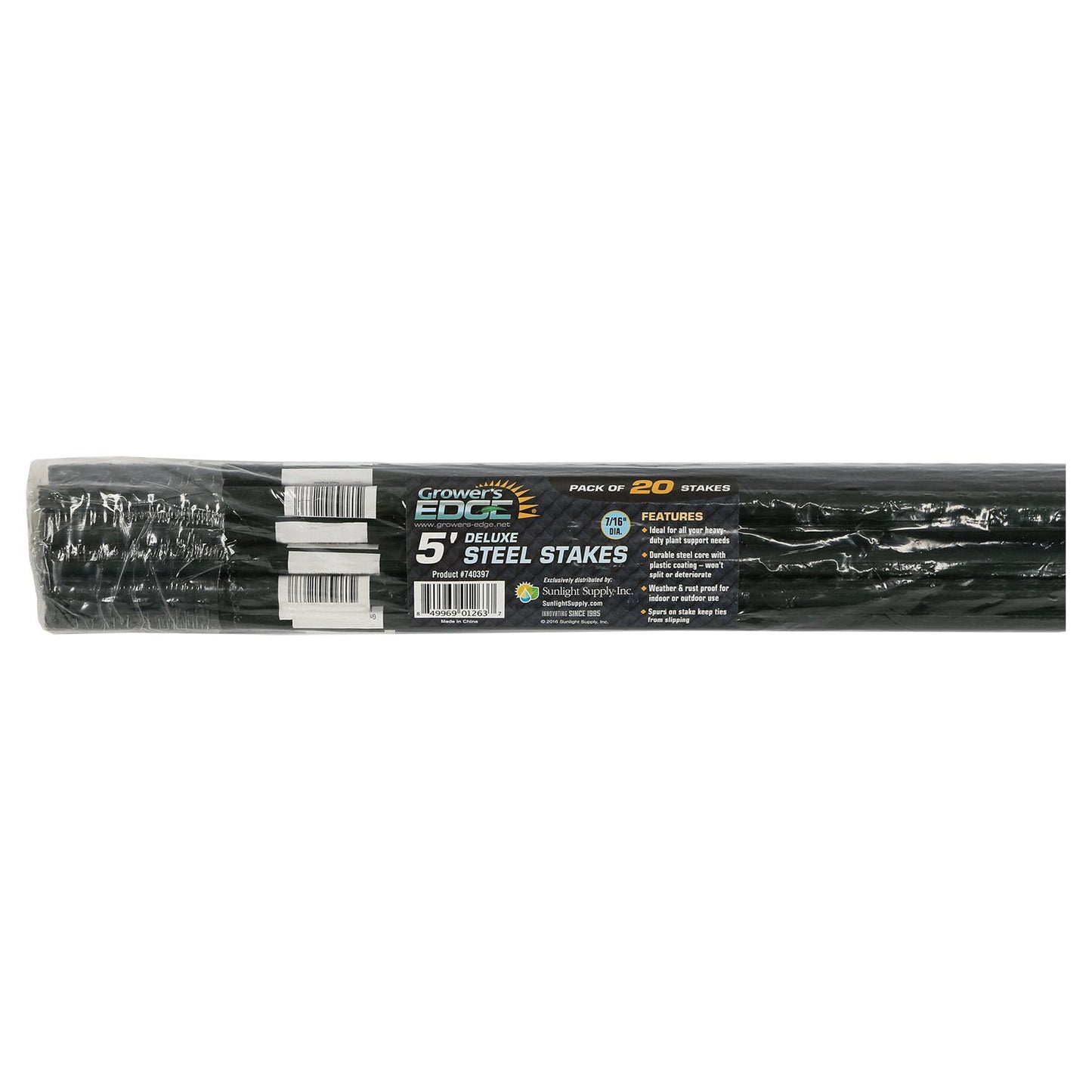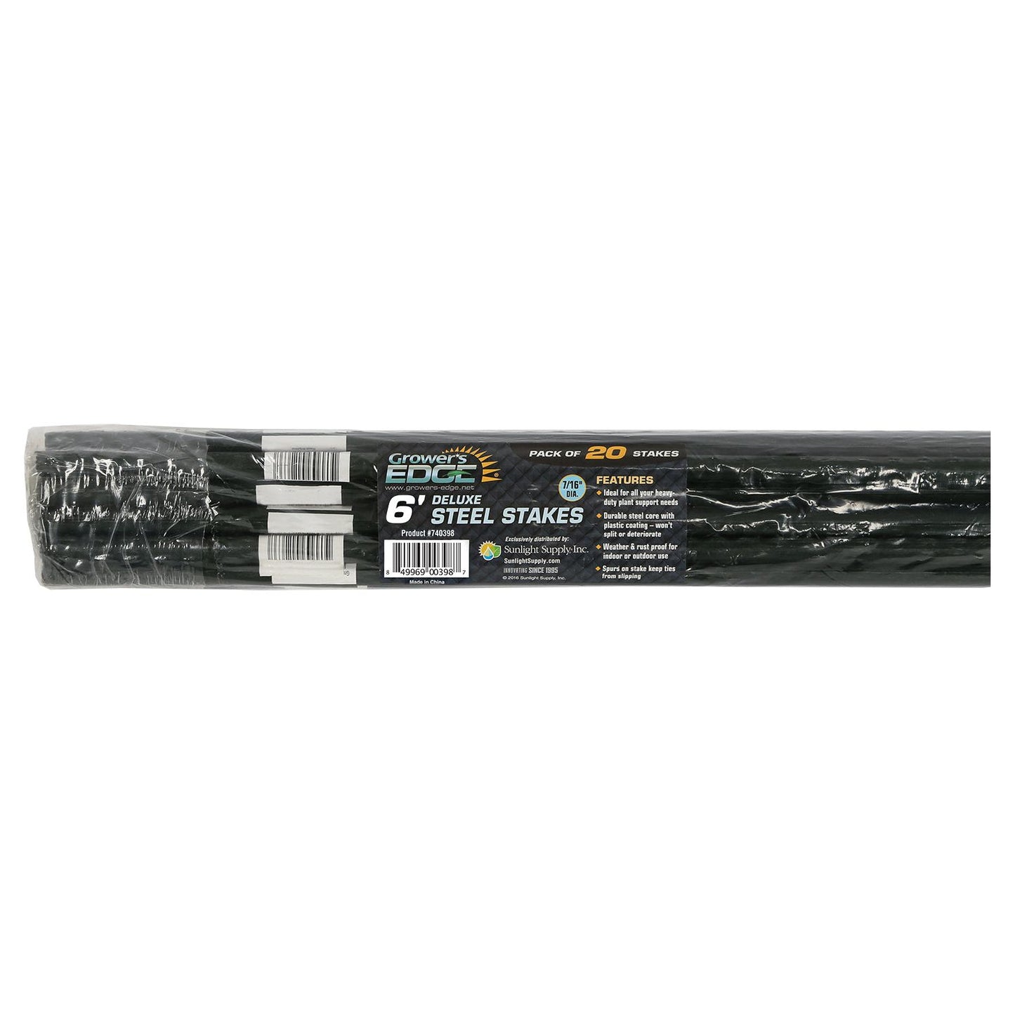 Deluxe Steel Stakes are ideal for all your heavy-duty plant supporting needs. The spurs on the stake keep the tie string or tape from slipping down, keeping your vines where you want them. The steel core is coated with green plastic to make them weather- and rust-resistant. They won't split, deteriorate or rot like bamboo stakes can. These stakes are great for both indoor and outdoor use. 6 ft and 8 ft stakes cannot be shipped UPS Ground.