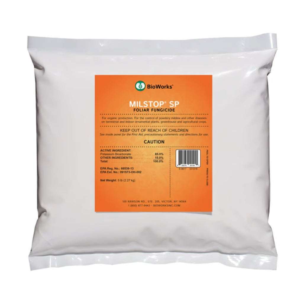 MilStop SP is an organic-approved foliar fungicide that suppresses and cures Powdery Mildew before it spreads. With no known resistance, MilStop SP stands alone in its effectiveness against this dangerous fungal disease. A complete formulation with surfactants already included, it can be applied right up to the day of harvest for extra protection. Add to that its ability to be used more broadly as a preventative control of many other foliar diseases, MilStop SP is one of the most powerful fungal solutions available.
