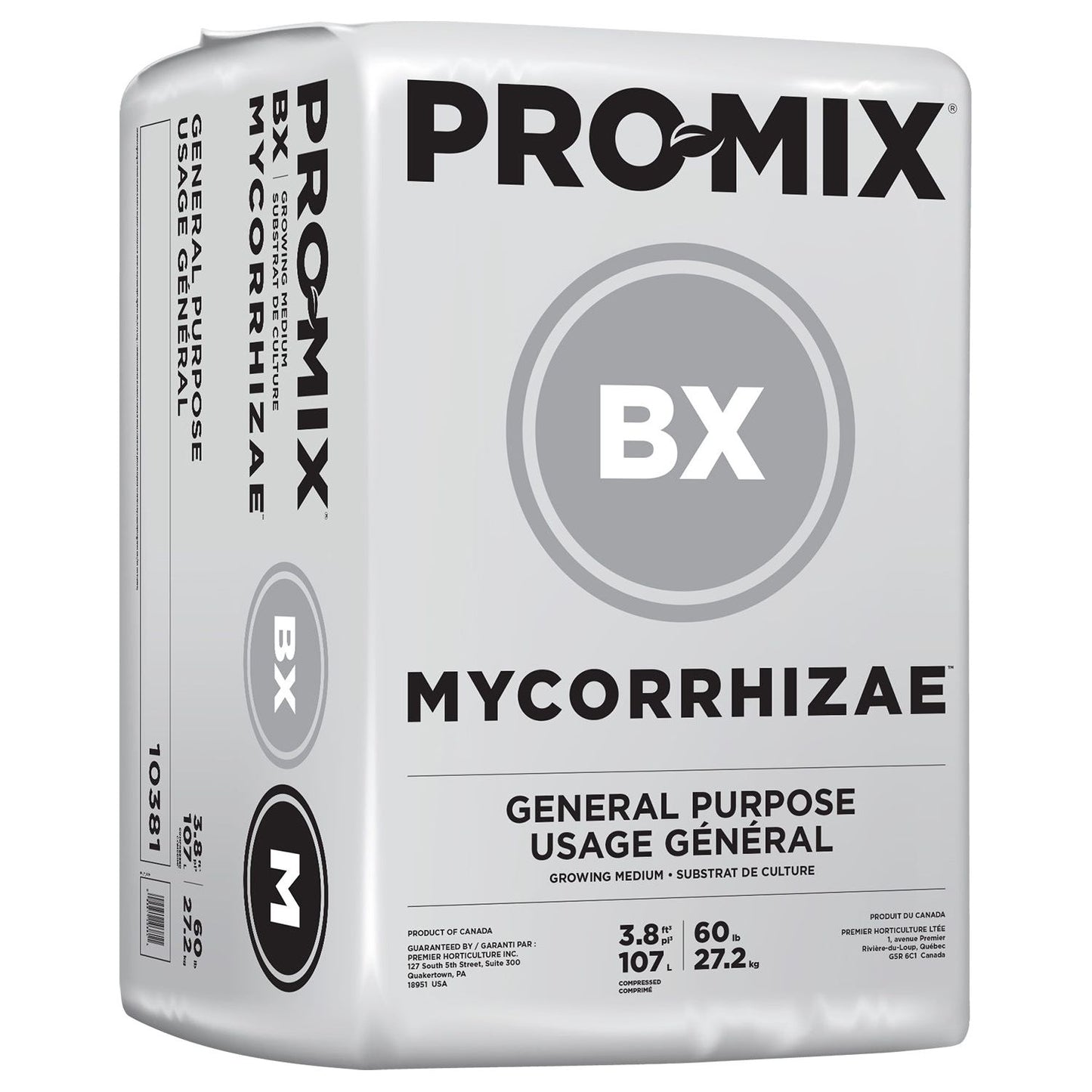 Pro-Mix BX Mycorrhizae is a general purpose peat-based growing medium containing a beneficial mycorrhizal inoculum (glomus intraradices). These microscopic fungi attach to and colonize the root systems working in symbiosis with plants. Contains: Canadian sphagnum peat moss (75 85%/volume), horticultural-grade perlite, horticultural-grade vermiculite, dolomitic and calcitic limestone (pH adjuster), wetting agent and mycorrhizae endomycorrhizal fungi (glomus intraradices).