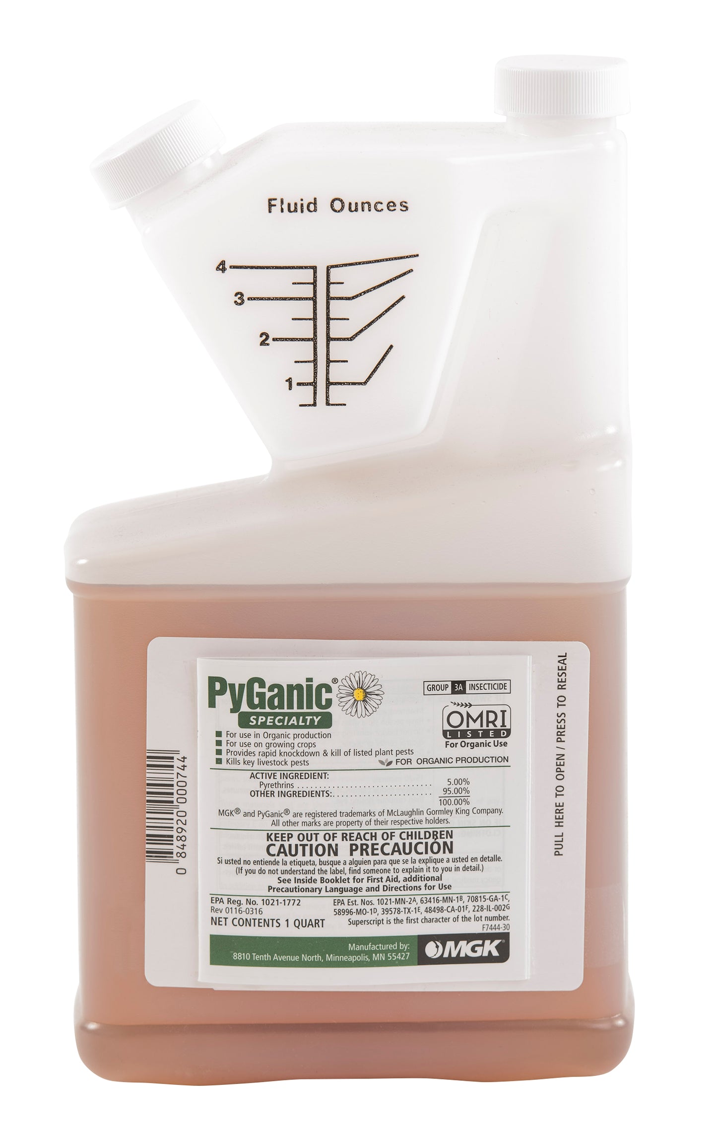 • Organically compliant - PyGanic is OMRI listed and meets the USDA's NOP requirements for an input.