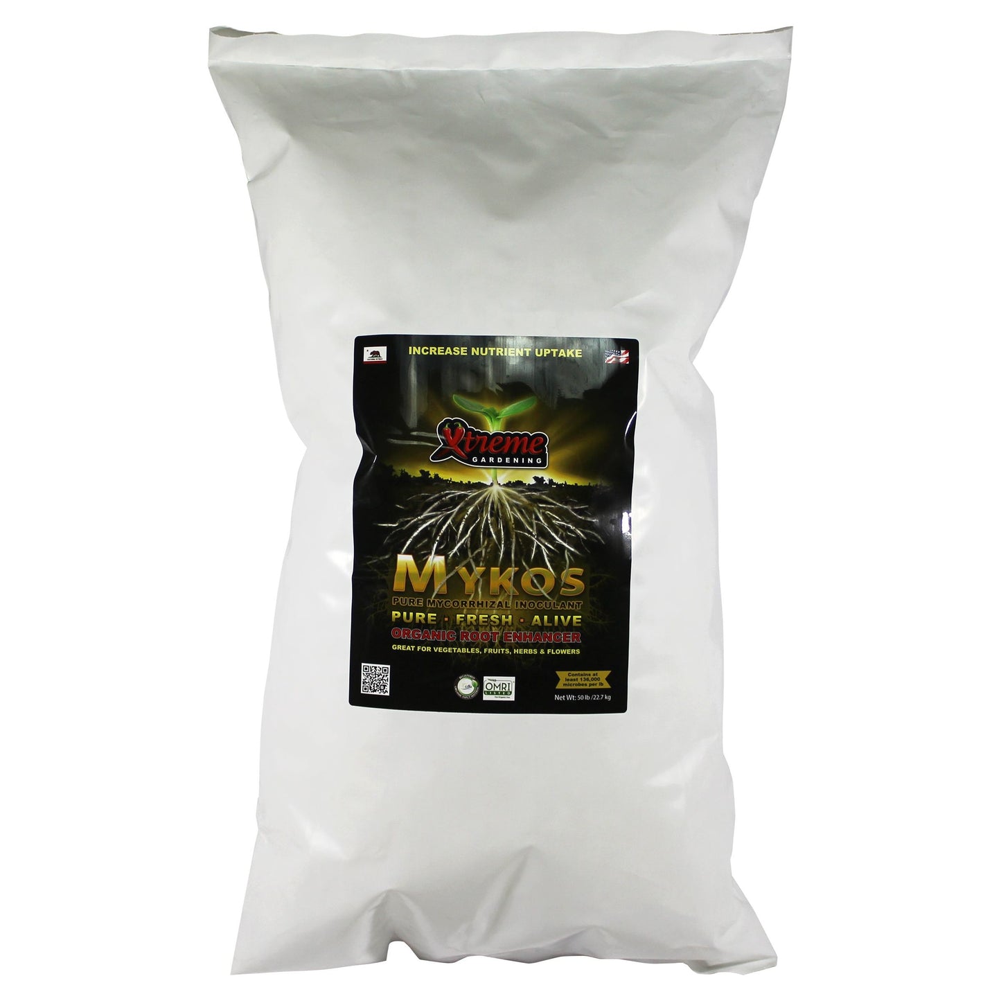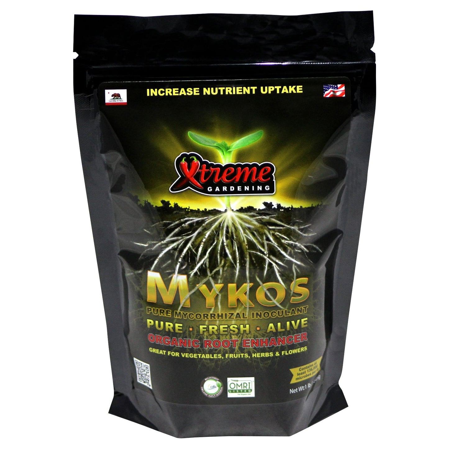 Mykos is very specific species of Mycorrhizae that works faster and stronger. If you haven't heard of mycorrhizae, it's a microbe that builds root mass and increases plant uptake of nutrients and water. With more roots, you get more fruits. Mykos grows the biggest and best fruits, vegetables, flowers and herb! It also helps "leap start" new transplants and shield roots from shock and disease. Mykos is a beneficial additive; it may be used with any nutrient line. Great for vegetables, fruits and herbs.